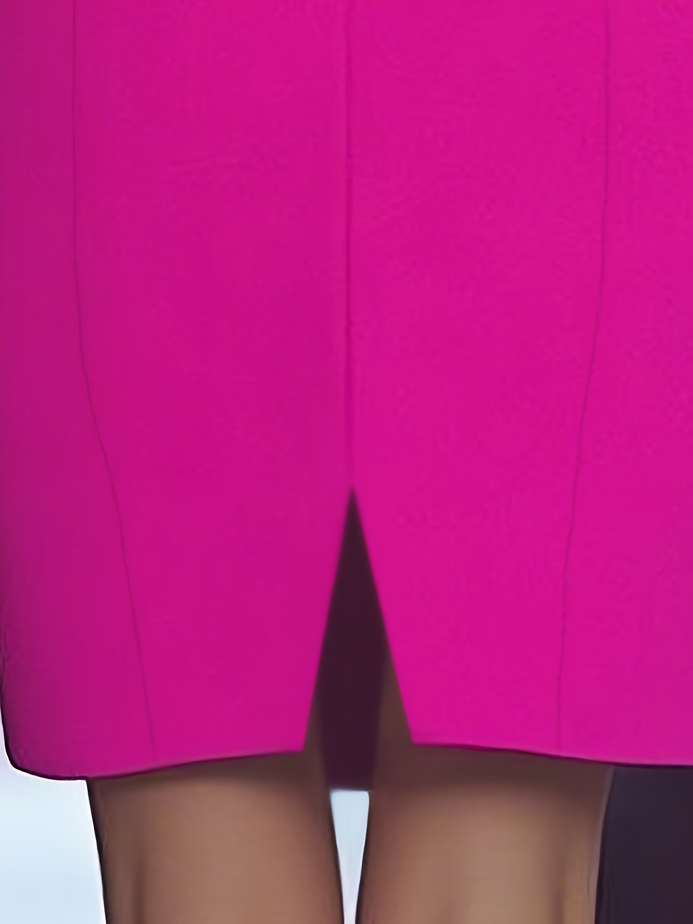 [Bright Pink Blazer Dress] Elegant Bright Pink Long Sleeve Blazer Dress | Women's Mid-Length Office & Casual Style with Double-Breasted Notch Lapel, Polyester Blend, Spring/Summer Collection, Versatile Fashion