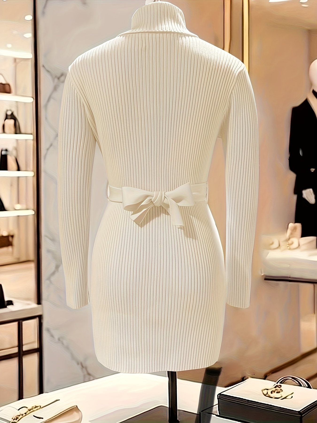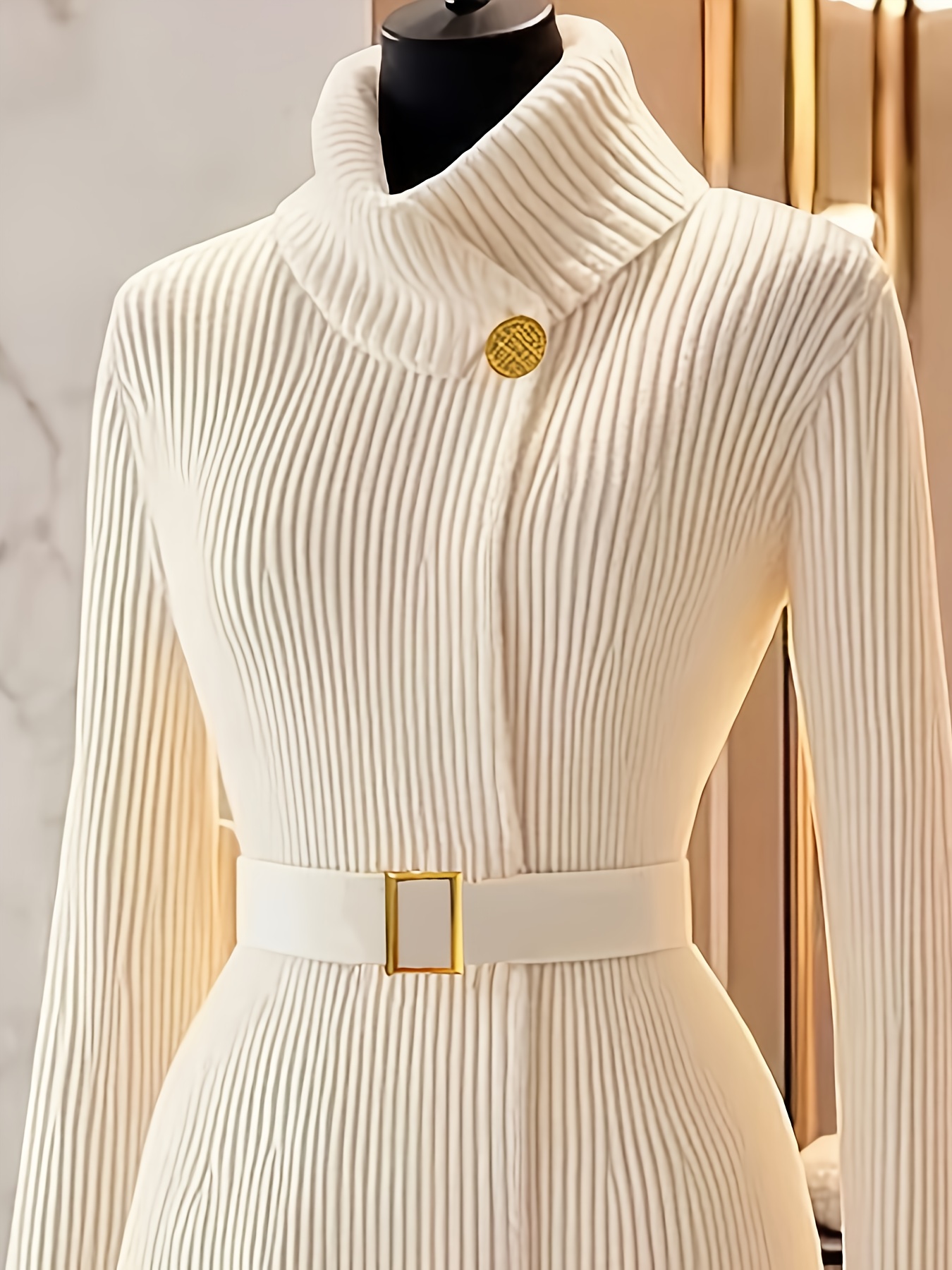 Elegant High-Neck Cardigan for Women - Chic Long Sleeve Sweater with Belt, Button-Up Front, and Golden-Tone Hardware, Perfect for Fall/Winter Fashion, Autumn Winter Wear | Belted Cardigan | Construction, Sweater Cardigan