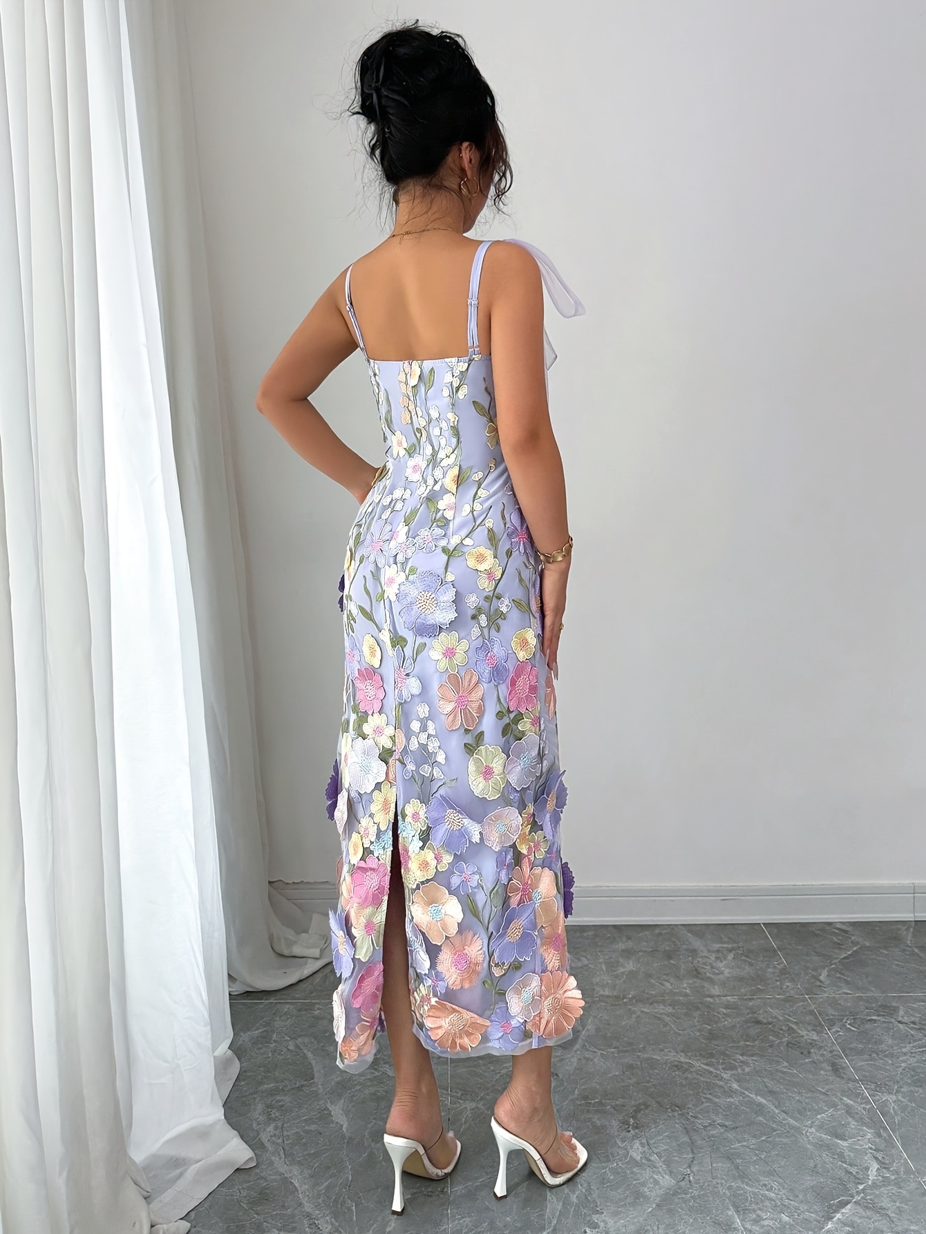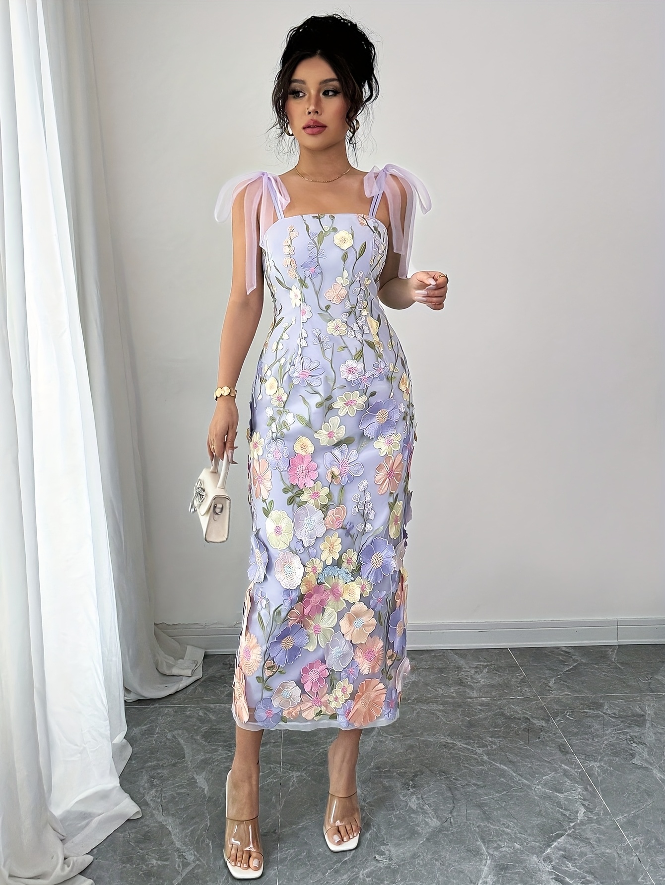 Women's Elegant Floral Print Off-Shoulder Sleeveless A-Line Maxi Dress with Adjustable Waist Tie - Lavender & Pastel Purple, Machine Washable Lightweight Formal & Semi-Formal Dress for Weddings, Parties, Vacations, Casual Attire