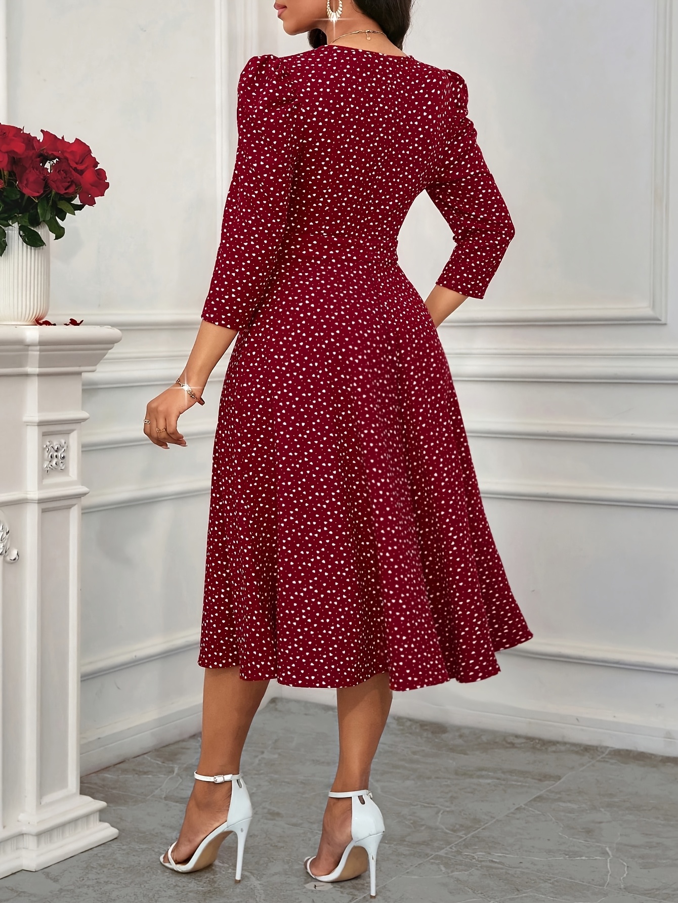 Women's Elegant Red Formal & Everyday dress - Flared skirt, Machine Washable Party, Work, Date Outfit - All-Season Chic Women's Dress, Workwear Attire, Flowy Fabric Gown, Comfortable Material, Professional Women