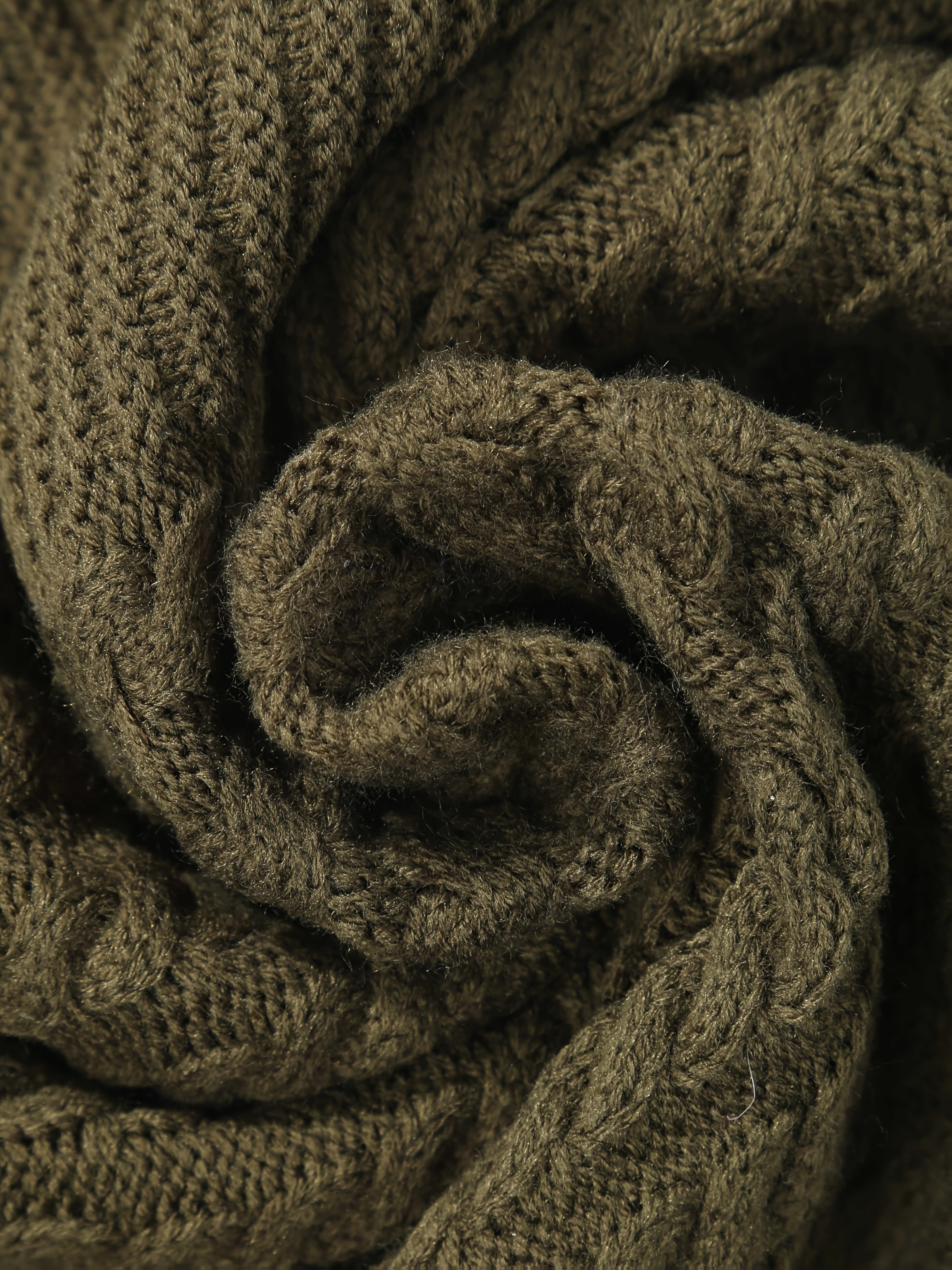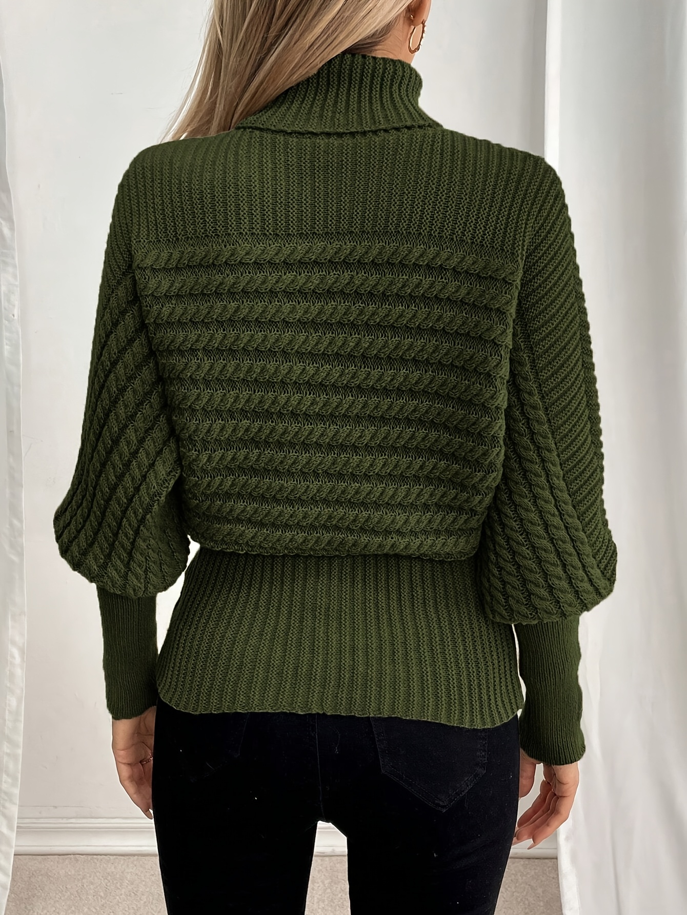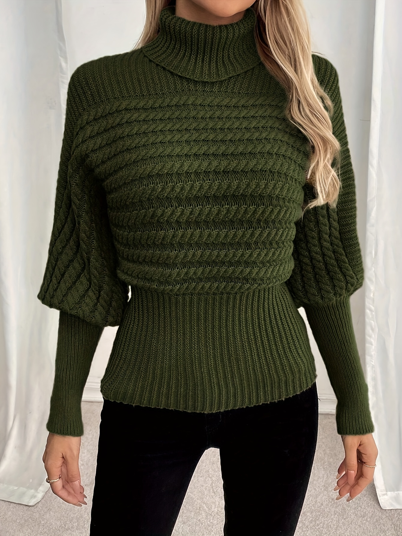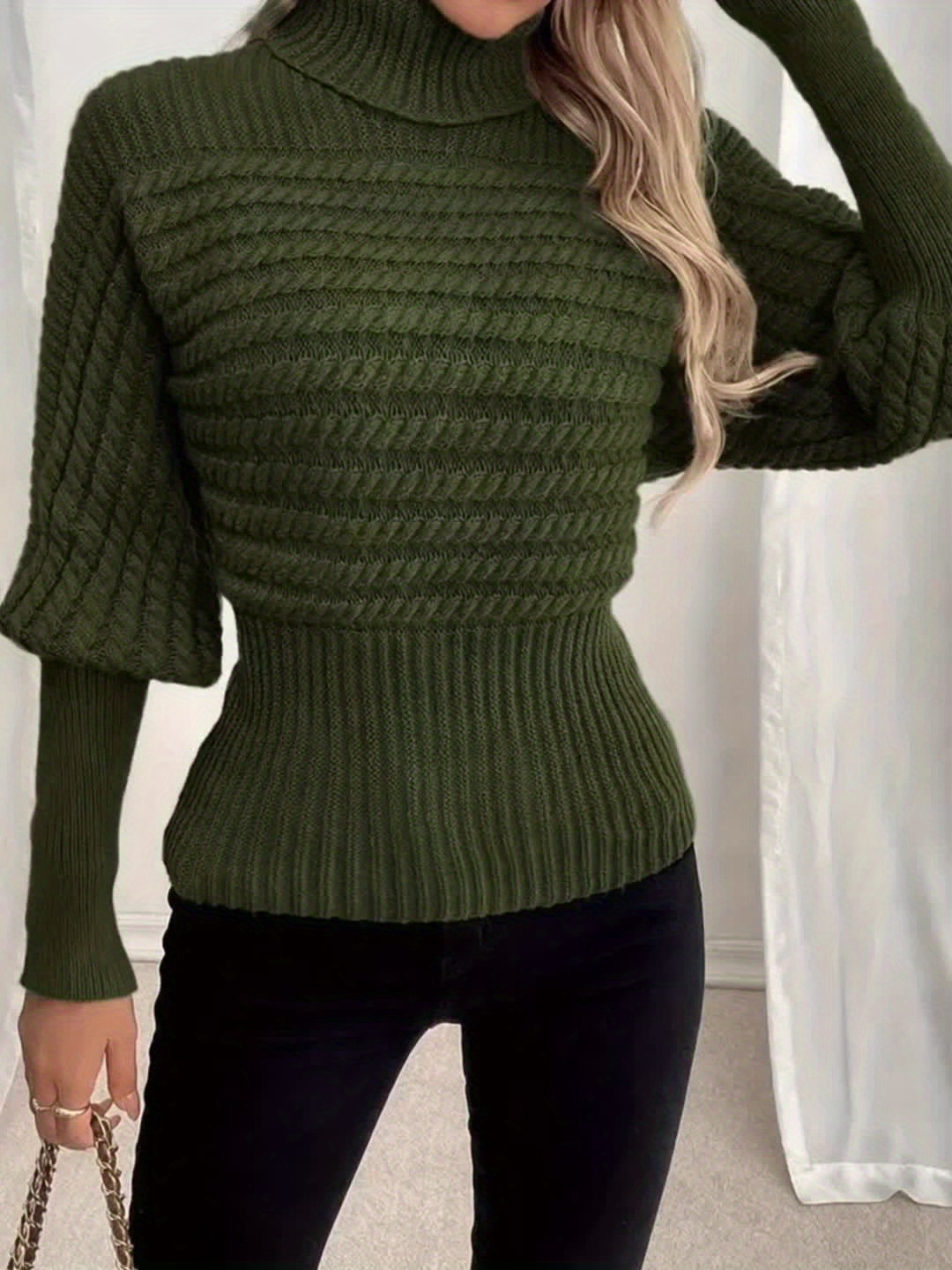 Women's High-Neck Ribbed Sweater - Olive Green Stretchy Long Sleeve Pullover, Loose Fit Textured Winter Top for Fall & Winter, Elegant Casual Chic Wardrobe Essential, Comfortable Fashion, Highneck Pullover, Soft Comfort