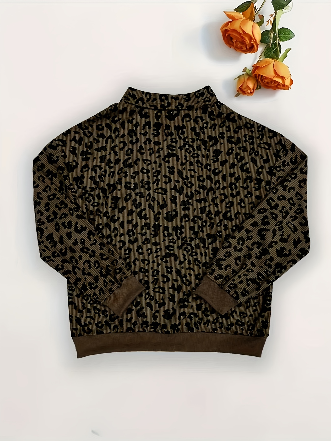 Women'S Stylish Leopard Print Sweatshirt with Front Zipper - Casual Long Sleeve Pullover, Brown & Gray Animal Print Design, Soft Polyester Fabric, Perfect for Spring & Fall