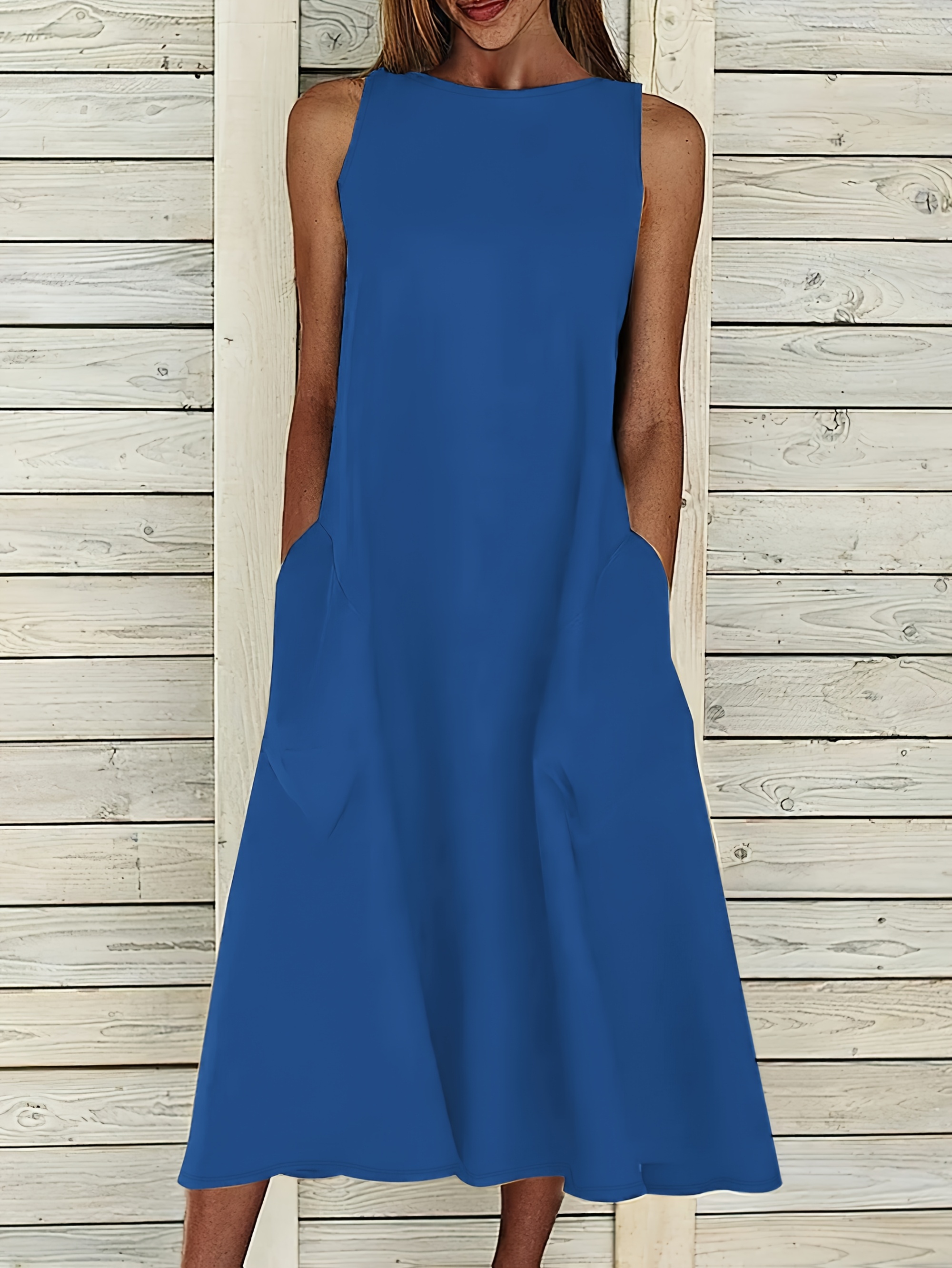 Targeted Development - New Long Knee-Length Slim-Fit Pocket Solid Color Casual Midi Dress