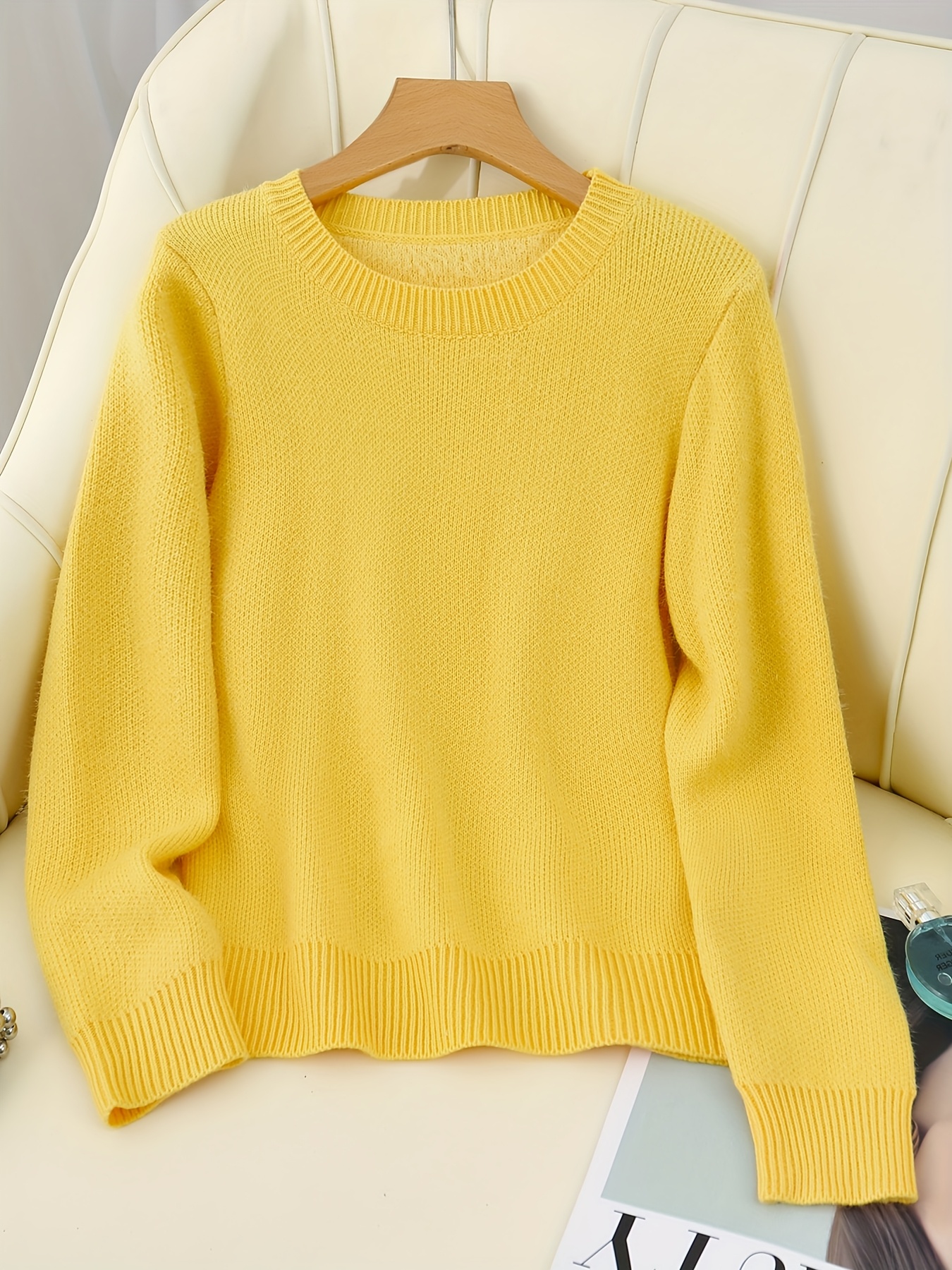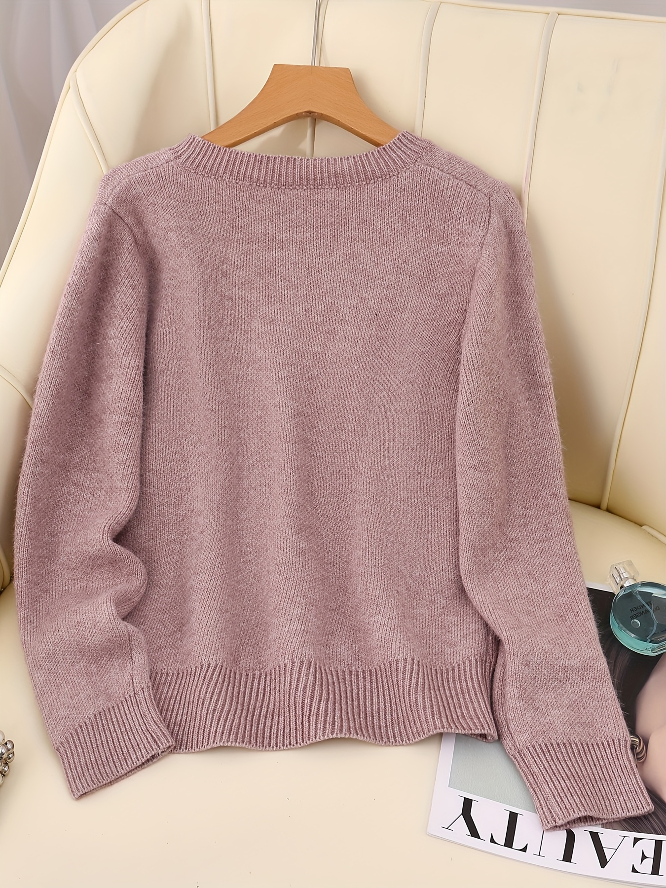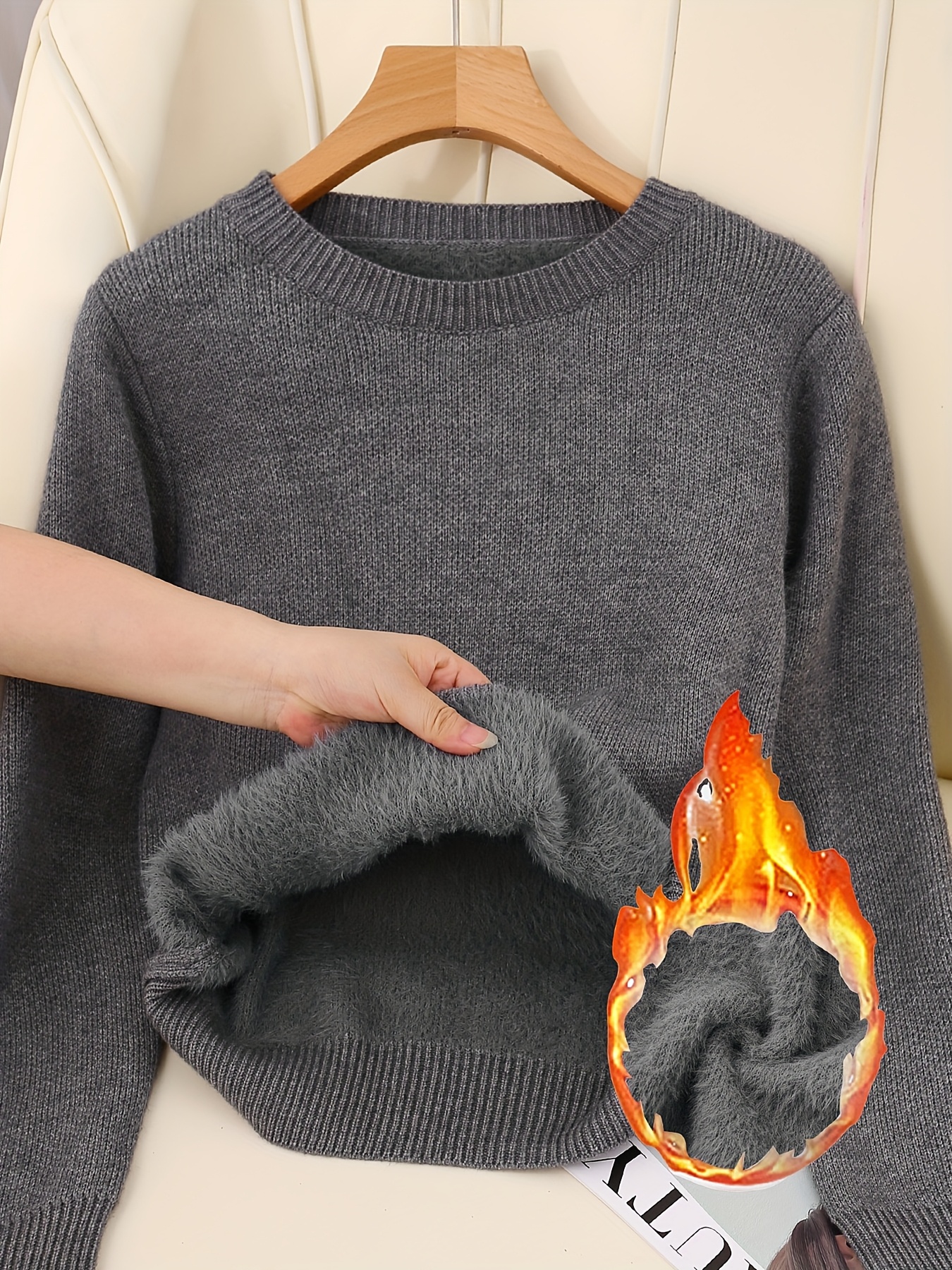 [Soft Thermal Sweater] Soft & Comfortable Women's Thermal Round-Neck Loose Fit Long Sleeve Sweater | All-Season Casual Top, Solid Color, Easy Care Hand Wash/Dry Clean, Medium Stretch, Clean Design